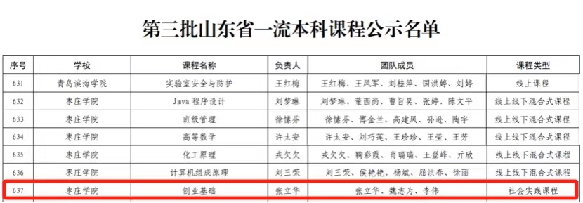 近日,山东省教育厅印发《山东省教育厅关于公布第三批山东省一流本科课程认定结果的通知》(鲁教高函〔2024〕11号),公司申报的社会实践课程《创业基础》名列其中,取得了公司省级一流本科课程建设的突破。