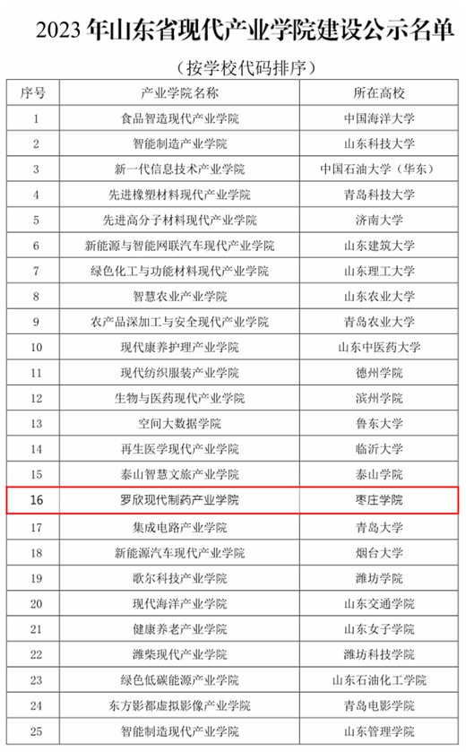 近日,山东省教育厅、山东省工业和信息化厅下发《关于公布2023年山东省现代产业公司建设名单的通知》(鲁教高函〔2023〕42号),确定25个产业公司为2023年支持建设的山东省现代产业公司,公司罗欣现代制药产业公司榜上有名,成为继锂电产业公司之后获批的第二个省级现代产业公司。