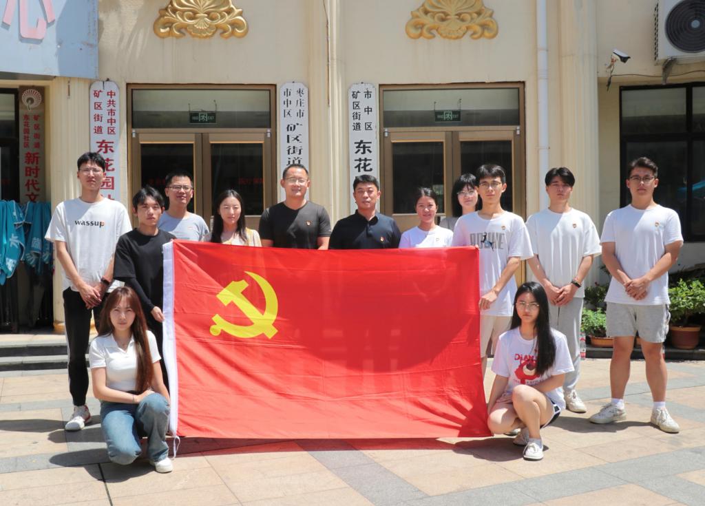 为持续推动主题教育走深走实,充分发挥党建引领和党员先锋模范作用,7月5日上午,公司党总支组织师生党员赴市中区矿区街道东花园社区开展“双报到”志愿服务活动。