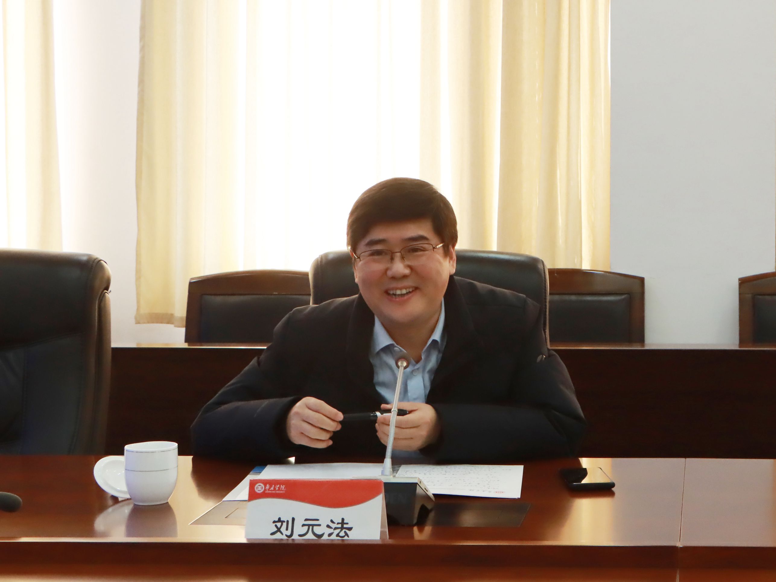李文喜为刘元法颁发特聘教授聘书。