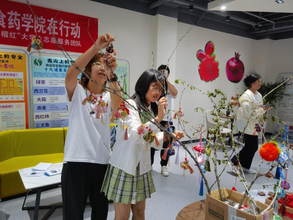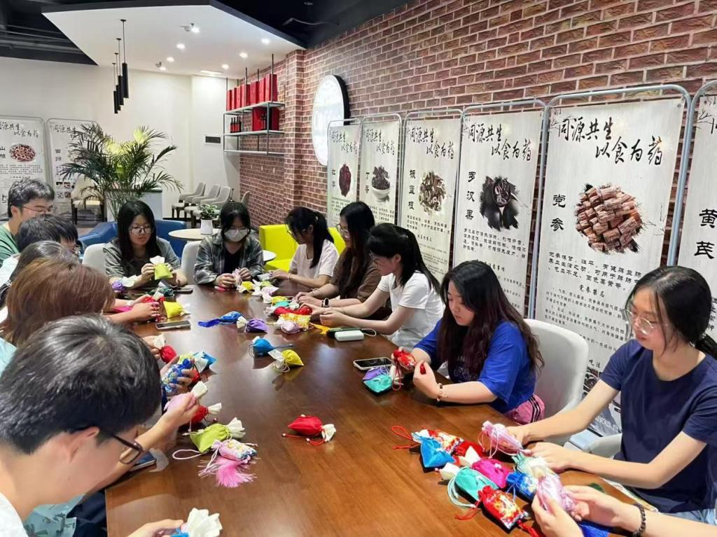 活动现场,公司专业教师带领同学们辨识艾叶、薄荷、陈皮、丁香等中药材,讲解其药理功效与配伍文化:“艾叶驱寒安神,薄荷醒脑舒缓,这些药材不仅可入药入膳,更能通过香气调节情绪。”同学们在指导下精心调配香料,缝制出兼具功效与美感的端午香囊。一针一线间,传统技艺的匠心与药食文化的智慧悄然流淌。