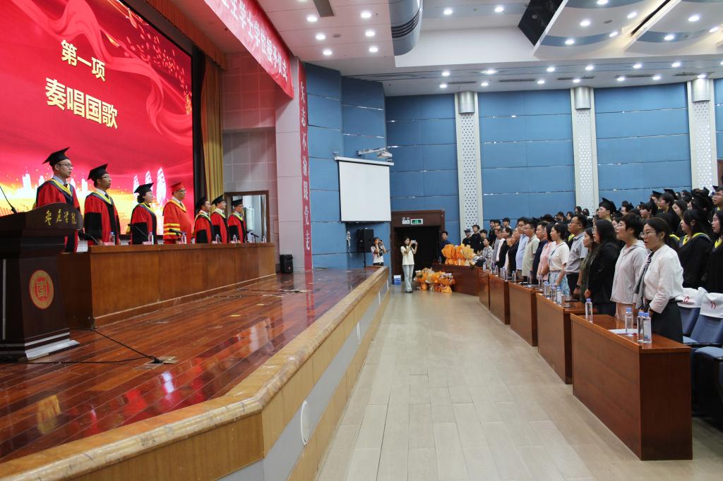 随着嘹亮国歌的响起,毕业典礼正式拉开帷幕。公司副经理孙中贯宣读了《关于授予2025届w66旗舰厅本科毕业生学士学位的决定》。