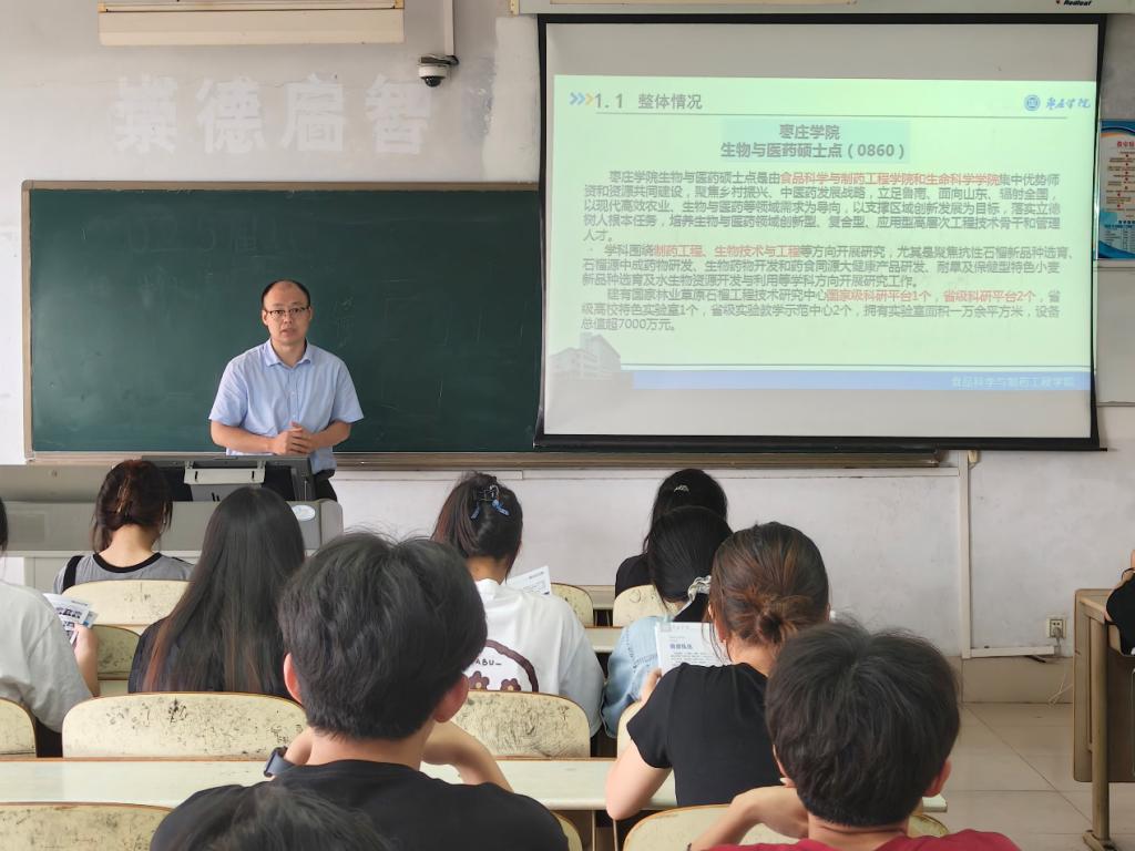 研究生宣讲会上,副经理杜健向两个公司员工详细介绍了公司生物与医药学位点、团队队伍、平台建设、学科优势与特色等方面的基本情况,耐心地解答了同学们提出的关于研究生招考的相关问题。