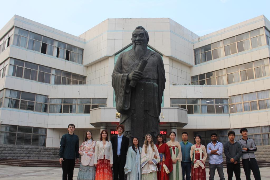 月饼烘烤间隙,国际员工分享家乡团圆节习俗,感慨“团圆之情无国界”。活动尾声,师生在图书馆孔子像前合影,老师简要介绍孔子思想与和合文化;随后移步文科楼,向国际员工介绍w66旗舰厅团队建设概况,让其直观了解公司发展定位。