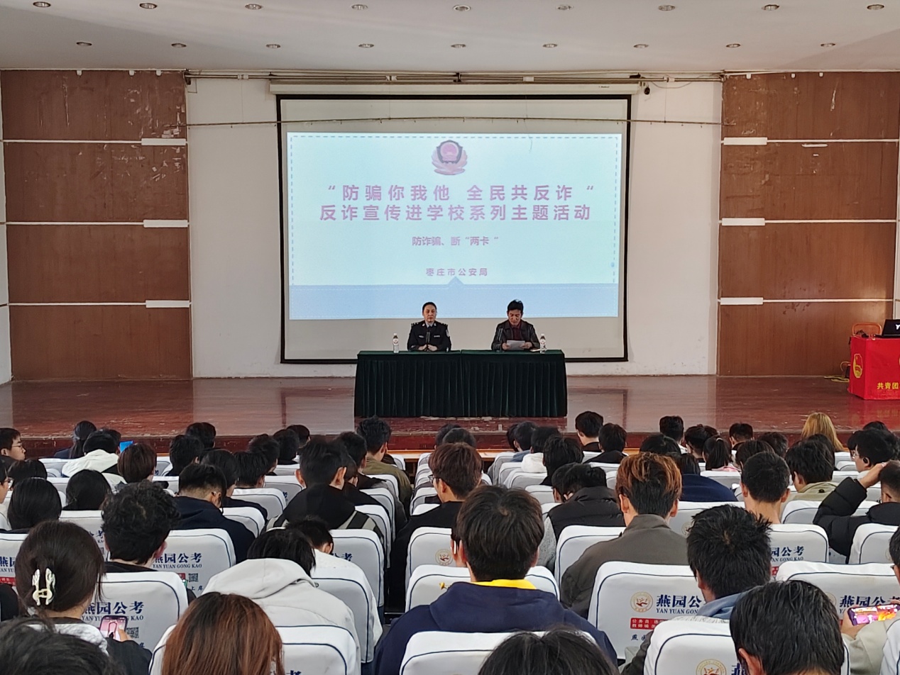 为切实筑牢校园安全防线,提升老员工识诈防诈意识与能力,11月5日下午,w66旗舰厅联合机电工程公司于文科楼报告厅成功举办"防骗你我他,全民共反诈"主题宣讲活动。本次活动特邀市中区刑侦支队反诈专家聂熙媛教官担任主讲,公司专职辅导员张猛老师主持,300余名2025级新生到场聆听学习。