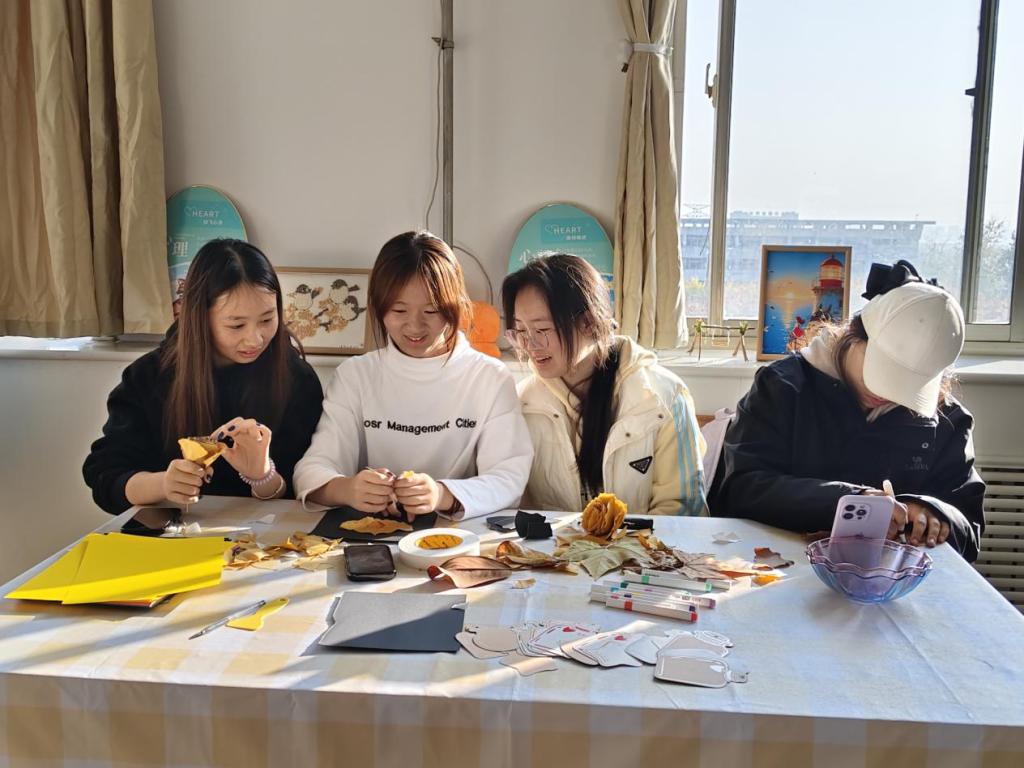 本次活动包含“捡秋—赏秋—创秋—悟秋”四个环节,旨在通过与自然亲密接触、动手实践创作的方式,实现心理疏导与情绪调节。活动伊始,同学们沿着映雪湖环湖步道、紫藤长廊及榴园景观区开启“捡秋”之旅。不少同学表示,平日里忙于课堂学习和实验室操作,难得有这样的机会静下心来感受公司秋景,湖边的清风、脚下的落叶都让人倍感放松。创意实现环节,大家将构思付诸实践,以创意创作让秋叶焕发新生。最后,公司对优秀创意作品进行了展示与表彰,并将部分作品布置在心理活动室,为同学们营造出温馨、治愈的心理支持环境。