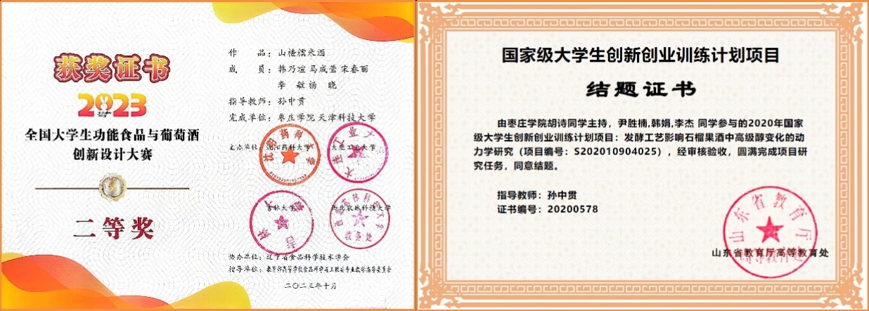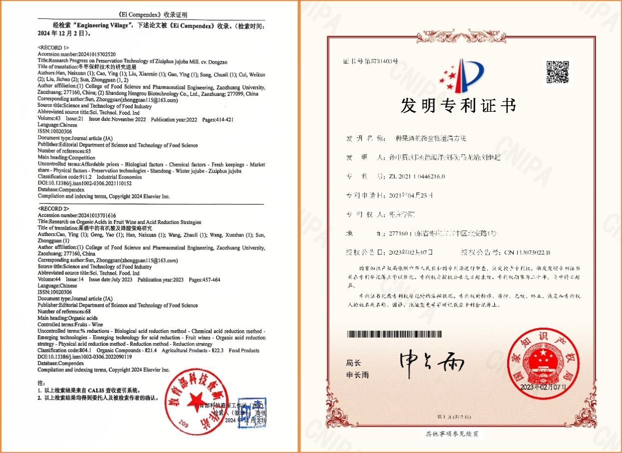 聚焦行业需求,他主持纵横向科研项目10余项,授权国家专利3项,实现成果转化1项;发表核心期刊论文15篇,跻身中国知网高被引学者TOP5%,荣获枣庄市自然科学优秀学术成果二等奖、枣庄市优秀企业科技创新派员。受聘山东省石榴精深加工工程技术中心副主任、省科技特派员、市石榴产业专家,为区域特色产业升级贡献智慧。