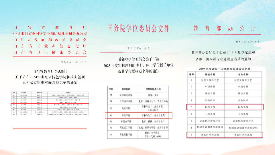目前设有食品科学与工程、食品质量与安全、制药工程、生物制药4个本科专业,在校全日制本科生1228人。其中制药工程专业2013年被列入山东省首批“卓越工程师”教育培养计划;食品科学与工程、制药工程专业于2016年被列为山东省高水平应用型立项建设专业群。食品科学与工程、制药工程专业2019年列入山东省一流专业建设点。2022年食品科学与工程专业获批教育部中外合作办学本科项目。2024年获批生物与医药专业学位硕士授权点,并于2025年开始招生。2025年获批山东省生物医药急需领域拔尖创新人才培养基地。公司秉承“成人+成才”育人理念,关注员工个性化发展,多层次分类培养。按工作就业和深造学业两个出口分别进行综合提升训练。毕业生就业率高、质量好,60%以上员工考取研究生进一步深造。