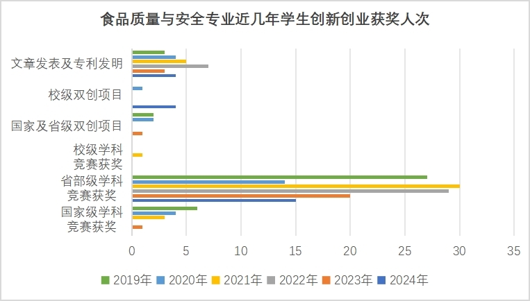 积极培养员工创新创业能力,注重培养员工的鲁班工匠精神与墨子创新精神的塑造。通过营造浓厚的文化氛围、优化课程设置、融入思政元素及强化实践训练,鼓励员工全员参与创新创业训练与竞赛,并且屡获国家和省级殊荣。以下为近几年食品质量与安全专业员工们获得的殊荣。