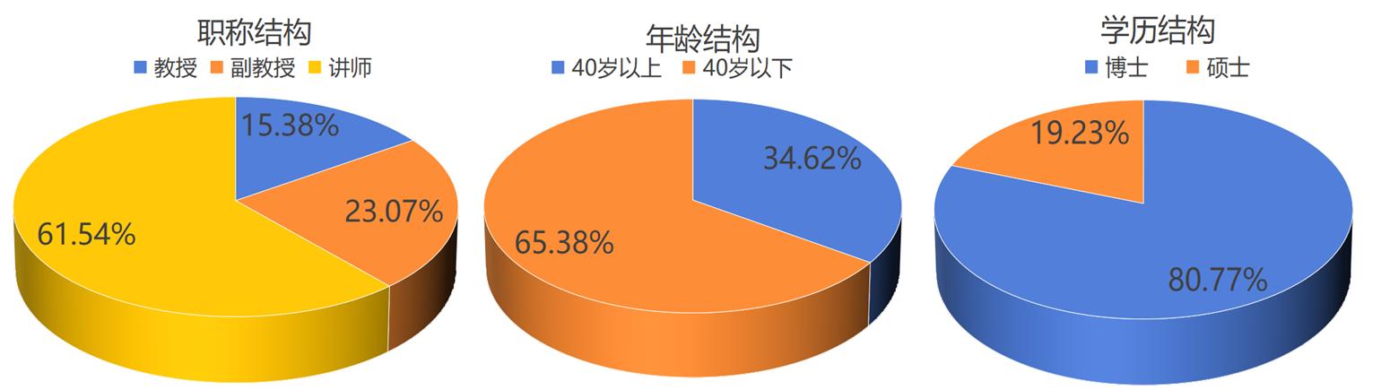 食品专业现有专兼职教师30人,其中专任教师26人,外聘企业兼职教师4人。专任教师中高级职称,教授4人,副教授6人,讲师16人,博士21人(海外博士2人),教团队质优厚。40岁以上中年教师9人,双师型教师12人,教师团队2021年获得“山东省高校黄大年式教师团队”称号,是一支教学经验丰富、学术水平较高的科研队伍。