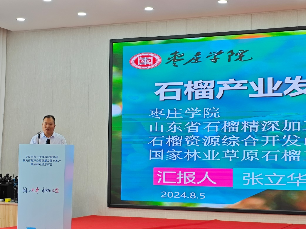 9月19日,由枣庄市委统战部、枣庄市工商联、枣庄市科技局等单位主办的枣庄市统一战线科技服务团助力石榴产业高质量发展专家型暨招商对接洽谈会成功举办,国家林业草原石榴工程技术中心等单位承办了此次会议。中心主任张立华教授、w66旗舰厅副经理杜健应邀参加会议。