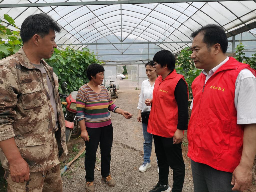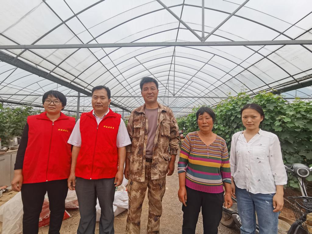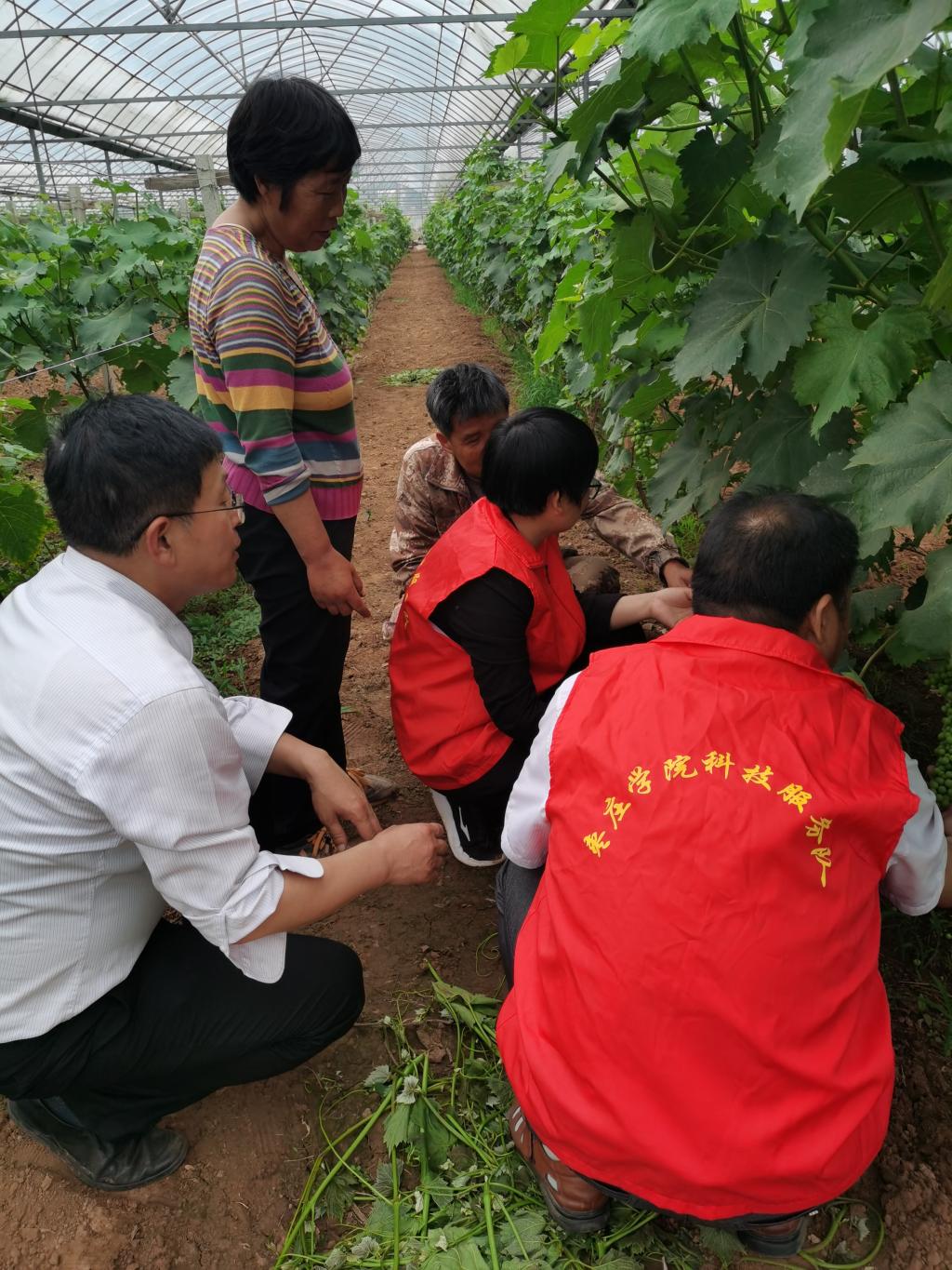 张立华一行3人,深入到东凫山村葡萄种植园,现场为农户讲解葡萄栽培管理相关专业知识,并就葡萄的病害防治和葡萄植株的修剪等方面进行现场技术指导。在田间地头,科技服务队成员与葡萄种植户深入交流,耐心讲解,一一解答农户提出的在生产种植中遇到的实际问题。