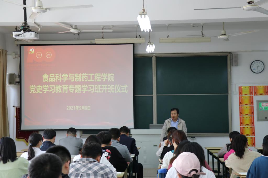 5月8日下午,公司党史学习教育专题学习班开班仪式在理工楼2207教室举行,公司党政领导,全体教职工和全体员工党员参加开班仪式,经理张立华主持开班仪式。