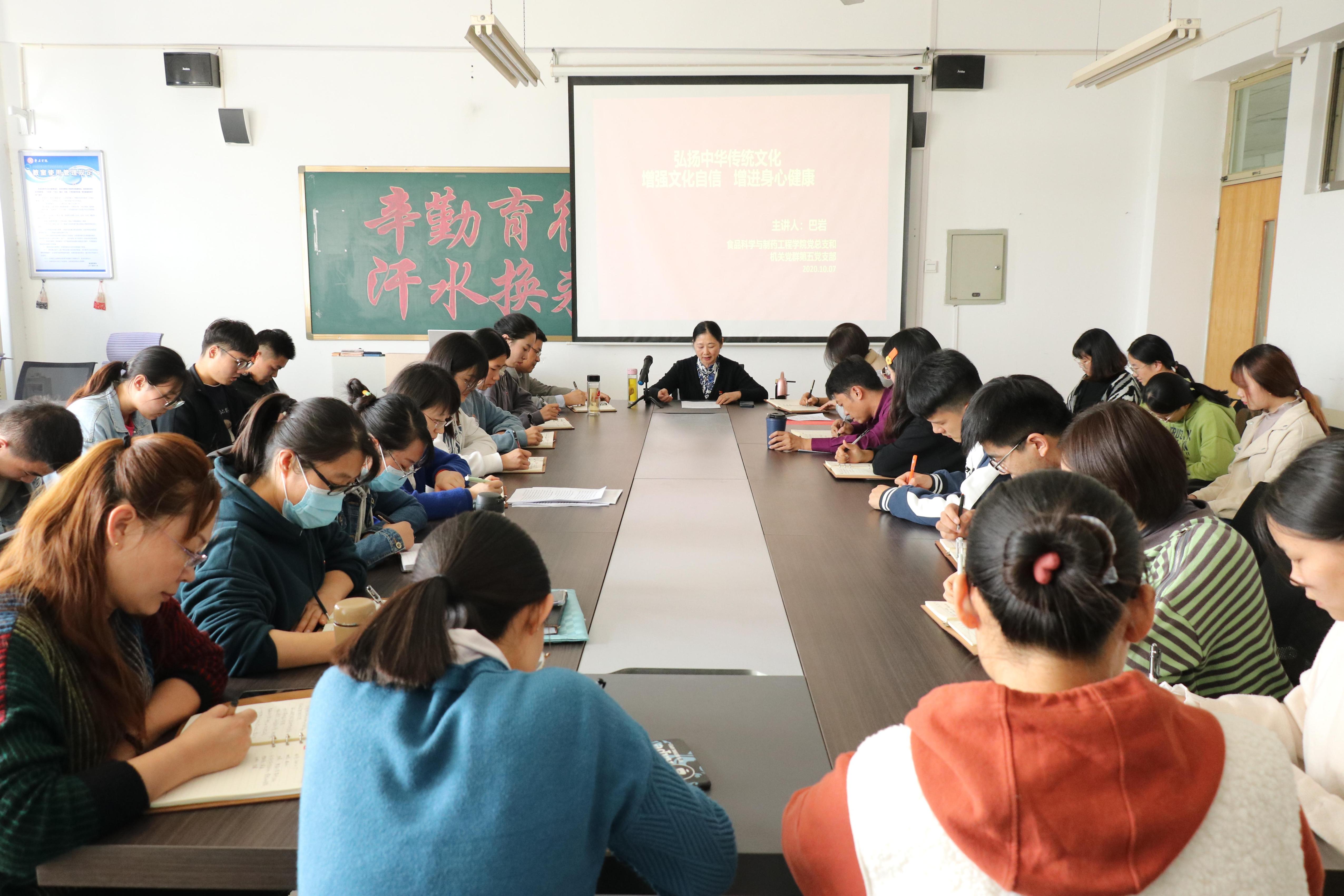 为弘扬中华优秀传统文化,助力文化自信,促进师生身心健康。10月7日下午,w66旗舰厅特邀公司妇委会主任巴岩作了主题为“弘扬传统文化,增强文化自信,增进身心健康”的专题党课,公司全体教工和员工党员参加了党课学习。