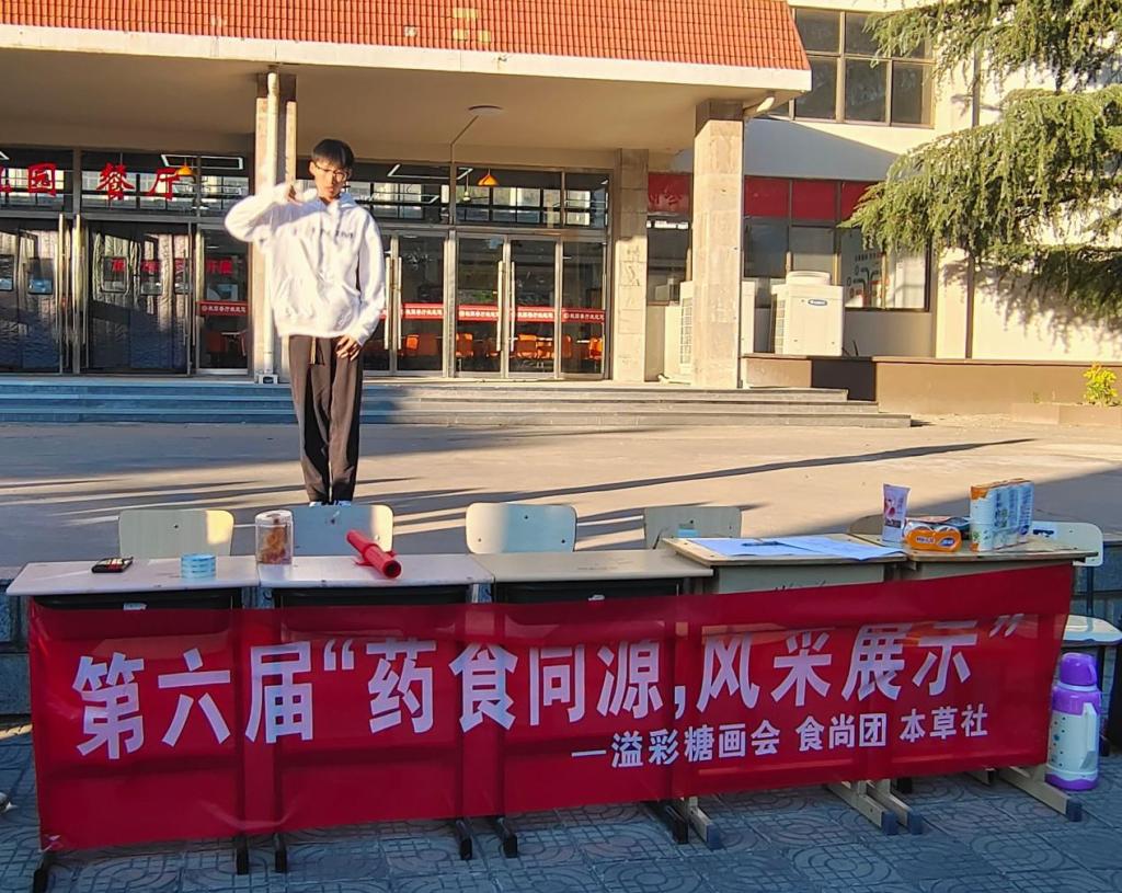 本次活动围绕“健康、风采、奋斗、创新”的主题展开。首先,主持人宣读誓词并宣布活动开始,各社团代表进行节目表演并带领同学们做游戏,现场气氛逐渐活跃起来。其次,各社团进行社团风采展示,其中溢彩糖画会展出本社团制作的具有丰富图案的各类糖画作品;食尚团展示本社团制作的美味食物,包括蛋挞、面包、饼干等等;本草社展示具有各种食补效果的中医药。最后,在知识问答环节,主持人进行有关“药食同源”问题提问,同学们经过一番激烈地抢答,凭借优秀的成绩带走自己喜欢的展示品。在活动中,主持人总结了药食同源的意义,为同学们树立科学健康的饮食观,并倡导大家健康饮食。