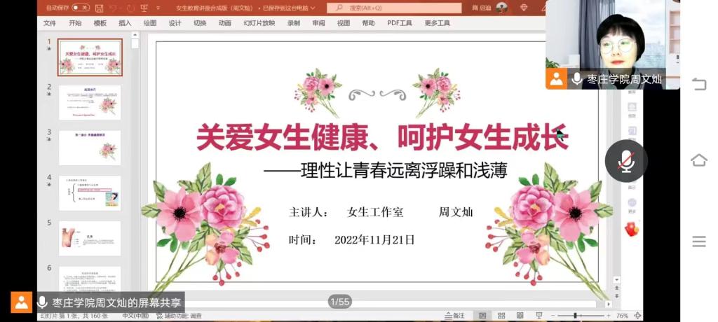 为普及女生健康意识,提高安全防范意识,加强心理健康教育,11月21日,w66旗舰厅通过腾讯线上会议举行了“关爱女生健康,呵护女生成长”的安全健康教育讲座,2022级全体女生参加。