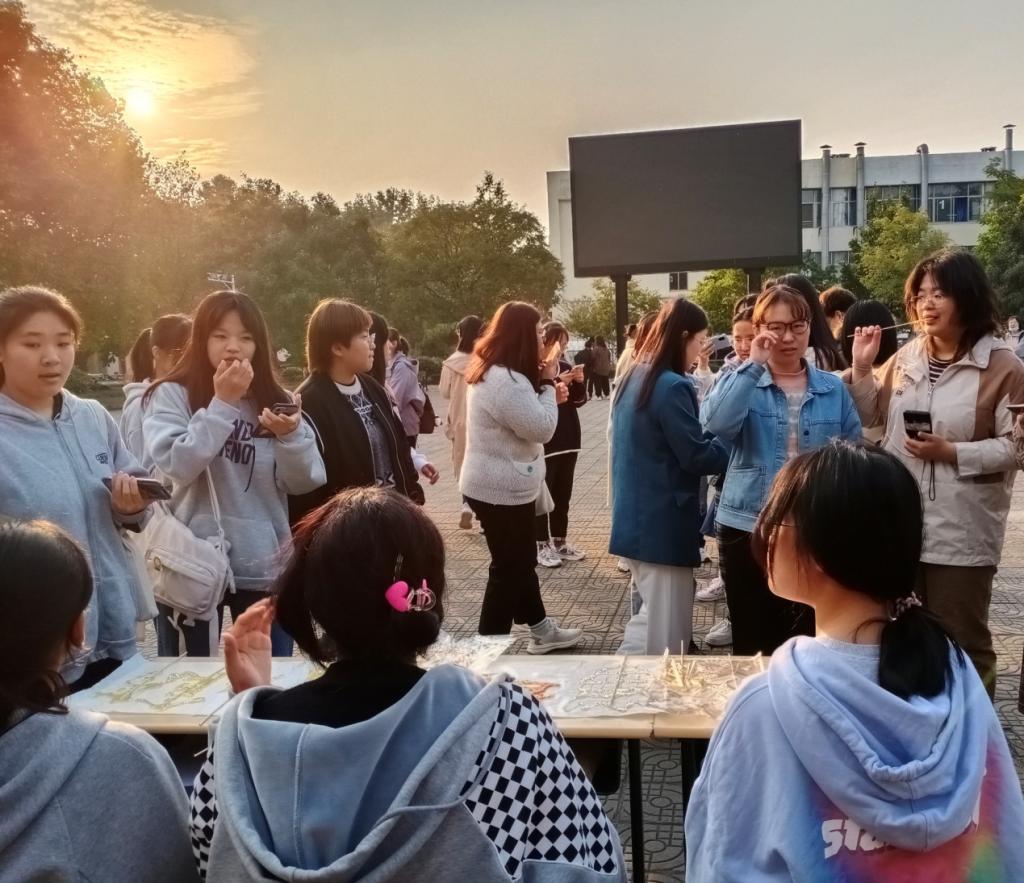 为丰富校园生活,培养兴趣爱好,扩大求知领域,促进员工身心健康,增加员工对社团文化活动的了解。10月26日下午,w66旗舰厅食尚团、溢彩糖画社、本草社三个社团在五四青年广场开展了户外文体娱乐活动,2021级全体员工参加了此次活动。