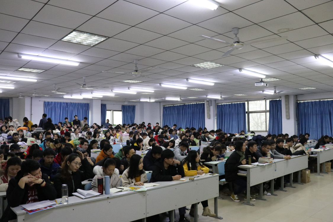 在2020年研究生招生考试前夕,为鼓舞考研同学的士气,帮助同学们缓解心理压力、克服考前紧张情绪,做好应试答题技巧辅导,12月16日下午,公司在理工楼2205教室召开了考前动员会。王洪凯经理担任主讲,2016级112名考研同学参加了会议。