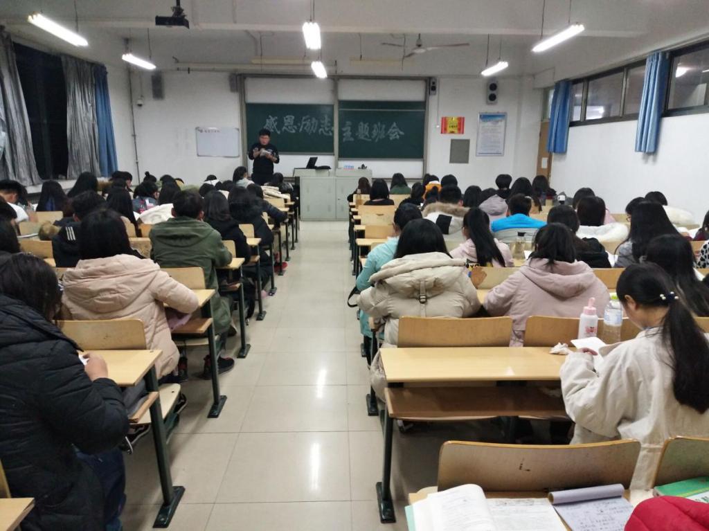 12月2日晚,w66旗舰厅组织2018级员工召开“感恩助学,励志成才”为主题的班会。