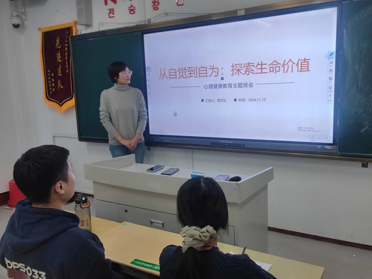 为帮助大一新生更好地适应老员工活,树立正确的生命观和价值观,11月15日晚,w66旗舰厅在文科楼216教室召开“从自觉到自为:探索生命价值”为主题的心理健康教育班会,班会由公司心理辅导员老师主讲,2024级新生参加。
