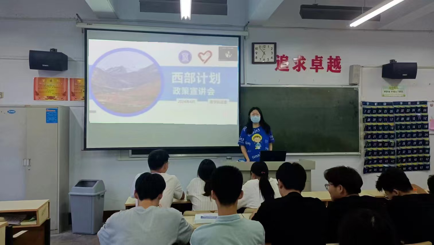 会议中,韩烨同学围绕西部计划的服务内容、政策支持、招募条件、报名流程等内容作了全面的介绍,让同学们对西部计划有了初步的认识与了解。同时,她结合事例对西部计划进行更深入的讲解,化抽象为生动,鼓励青年学子以优秀志愿者为榜样,深入基层、扎根基层,在西部这片广阔的大地上挥洒青春热血。随后,只茂蕊与赵先超分享了自己在西藏、新疆从事志愿服务时所亲历的志愿生活、服务地详情、生活保障和风土人情,通过一张张真实的图片,同学们对参加西部计划的意义有了深入理解。通过两位优秀志愿者的耐心讲解,同学们坚定了投身西部、服务西部的信念与决心。