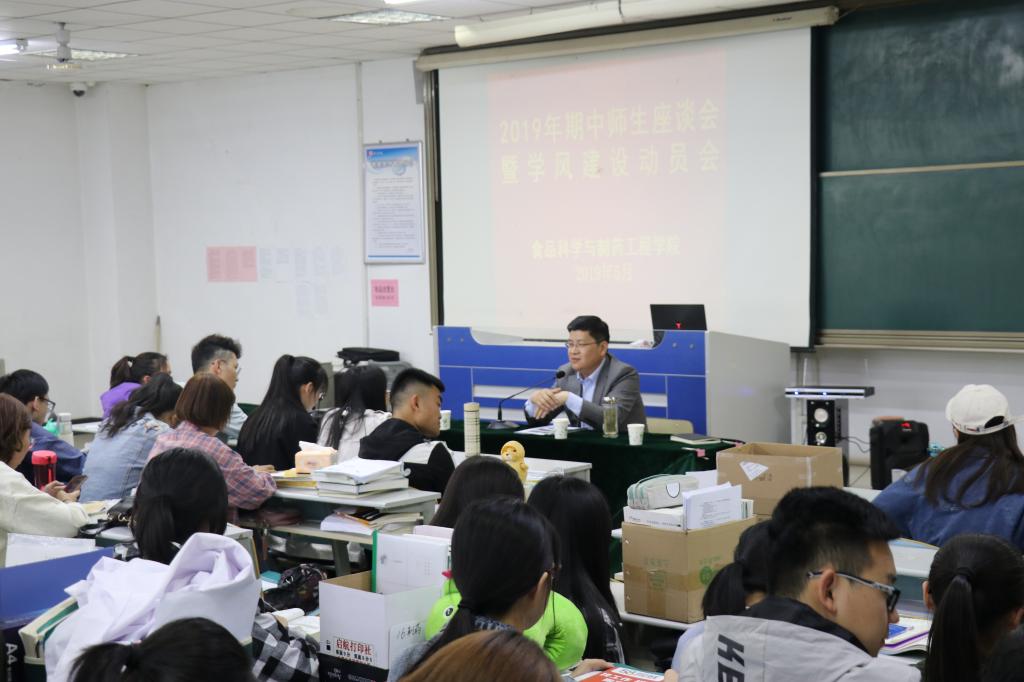 在理工楼2205教室召开2019年期中师生座谈会暨教风学风建设动员会,公司领导、教师代表、辅导员、各年级员工代表200余人参加会议。