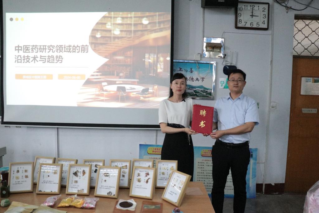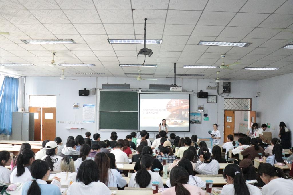 会上,王京龙经理为王丽副经理颁发了客座教授聘书。王丽副经理从中医药的发展历史由浅入深,系统论述了新技术对中医药研究创新发展的影响,展望了中医药研究前沿技术的发展趋势。此外,王丽结合26年中药制剂研发实践经验,分享了新质生产力赋能中药制剂研发、药膳研发、大健康产业研发的心得体会。为同学们提供中药药膳、中药养生茶饮、中药文创产品的免费品鉴、交流、分享等互动活动。会后,王丽与师生们进行了深入的交流,并就师生们提出的问题做出了耐心解答。