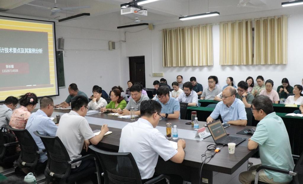 报告涵盖了工艺设计基础、典型工艺设计技术要点等内容,重点给老师们介绍了厂区车间布局要点、GMP车间规范、生产过程工艺设计与方案优化、物料能量衡算、设备选择、片剂等不同剂型车间规划布局等设计要点。提问答疑环节,张长银以本院部分员工的车间设计为例,与老师们在车间设计指导过程中存在的问题进行了深入交流与探讨。