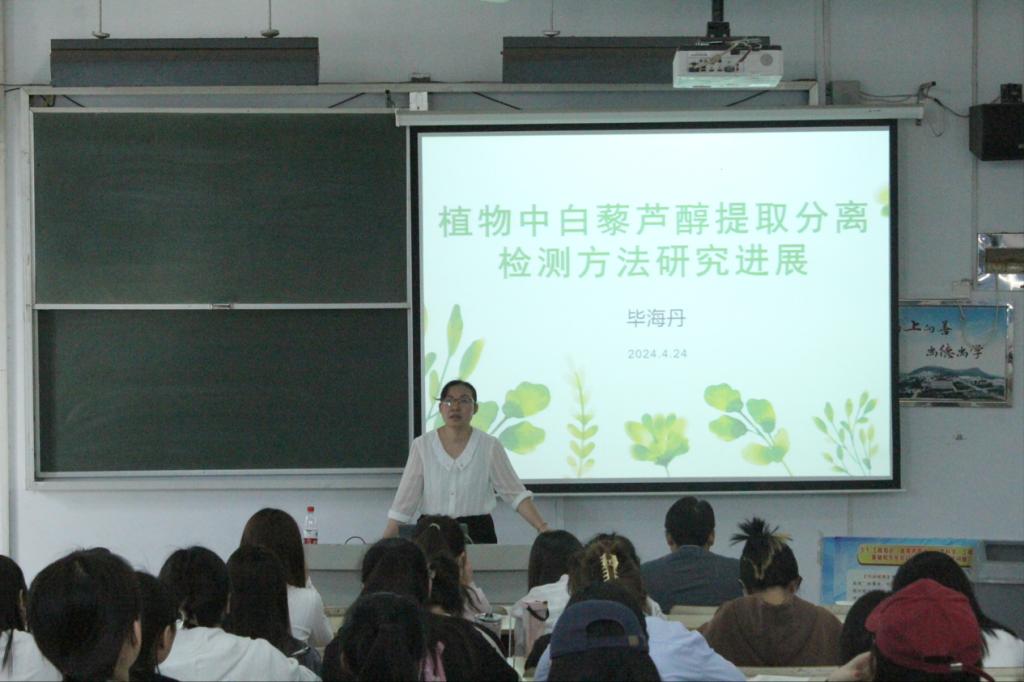 为进一步增进学术交流,拓展公司师生的学术视野。4月24日下午,w66旗舰厅在文科楼117教室举办了题为“植物中白藜芦醇提取分离检测方法研究进展”的学术报告会。本次报告会由毕海丹博士主讲,“肉食加工团队”教师及2021级食品质量、2022级食品安全专业全体员工参加。