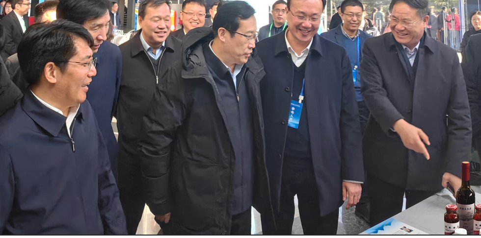 李文喜董事长给邓云锋副省长介绍公司的石榴汁产品