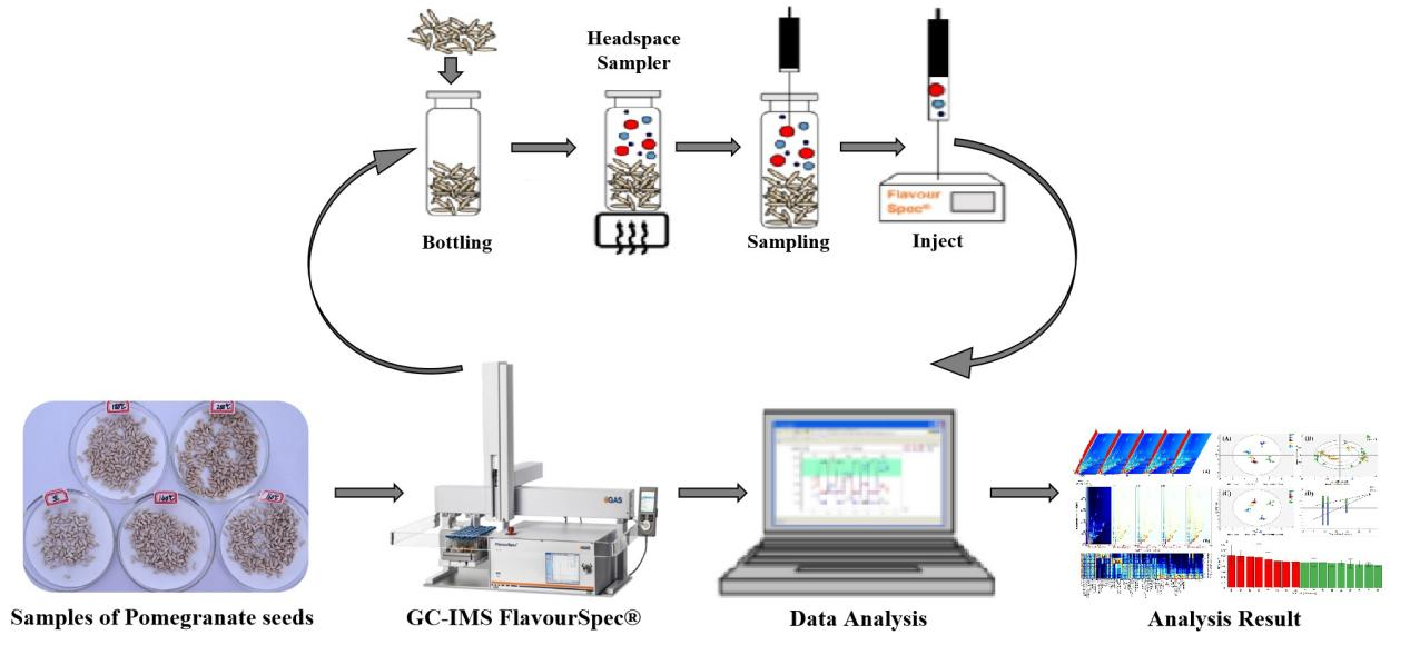 石榴是枣庄的特色资源,具有广泛的利用价值。该研究以石榴籽(石榴汁的加工副产)为研究对象,利用GC-IMS技术结合相对气味活度(ROAV)及统计学分析方法,揭示了石榴籽炮制加工过程中风味产生的机制,以及挥发性有机成分(VOCs)对风味形成的贡献,为进一步研究开发利用石榴资源奠定了理论基础。